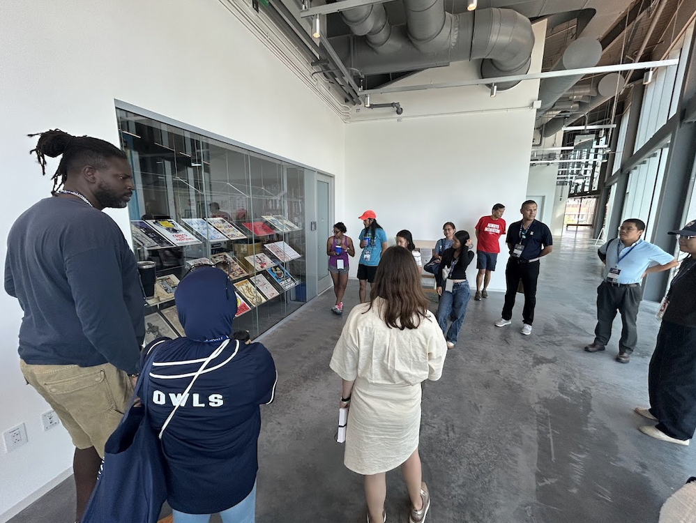 The RUCAA Alumni Weekend 2025 tour of the newly opened Sarofim Hall gave alumni and current students an inspiring look at Rice’s cutting-edge 94,000-square-foot home for the visual arts and was designed by Rice Architecture alumnus Charles Renfro of Diller Scofidio + Renfro. RUCAA members explored the building’s striking intersecting glass walls, light-filled studios, flexible performance lab, and the 215-seat cinema that now anchors film and media arts on campus. School of Humanities’ Emily Stein highlighted the building’s indoor-outdoor workyards, industrial studio doors, and LEED Gold sustainability features, all of which reflect Rice’s commitment to creativity, collaboration, and innovation. After the tour, RUCAA members gathered for a breakfast meetup where alumni and current students connected across class years, shared memories and career updates, and reflected on how the new arts facilities will shape student experiences moving forward. The meetup was especially significant because it reinforced RUCAA’s mission of community and mentorship and offered space for intergenerational conversations, cultural connection, and meaningful relationship-building. Thank you to all alumni and students who attended.